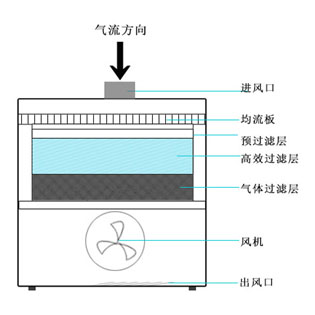 2.主过滤层过滤梯度设置:初中效过滤+HEPA高效过滤。净化颗粒直
