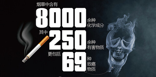 据研究发现,香烟烟雾含有几千种化合物,包括一氧化碳、重金属元素和高分子化合物等以气态和气溶胶形式存在的有毒物质,在吸烟场所可吸入颗粒物中的28. 7 %或22. 7 %来源于香烟烟雾。